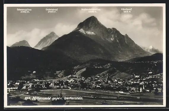 AK Mittenwald, Ortsansicht gegen Wetterstein