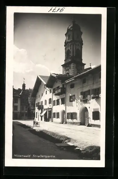 AK Mittenwald, Partie im Ortskern mit Blick zur Kirche