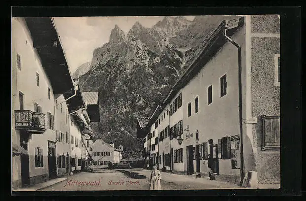 AK Mittenwald, Unterer Markt, Strassenpartie