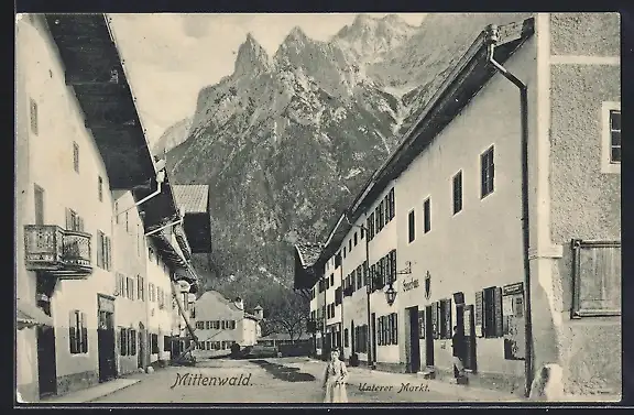 AK Mittenwald, Unterer Markt, Strassenpartie