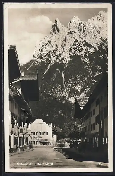 AK Mittenwald, Unterer Markt mit Bücherstube Leitzbibliothek