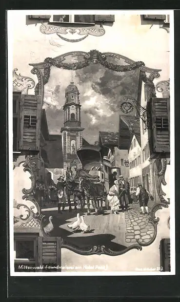 AK Mittenwald, Wandmalerei am Hotel Post
