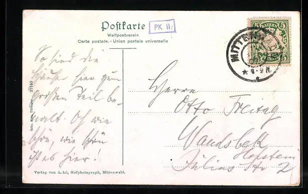 gelaufen 1907, Eckknick li. unten, sonst guter Zustand