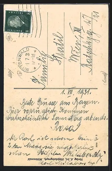 alte Ansichtskarte, gelaufen 1931, guter Zustand