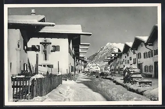 AK Mittenwald a. Isar, verschneiter Untermarkt