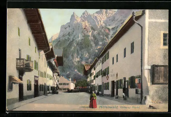 AK Mittenwald, der Untere Markt mit Bergen