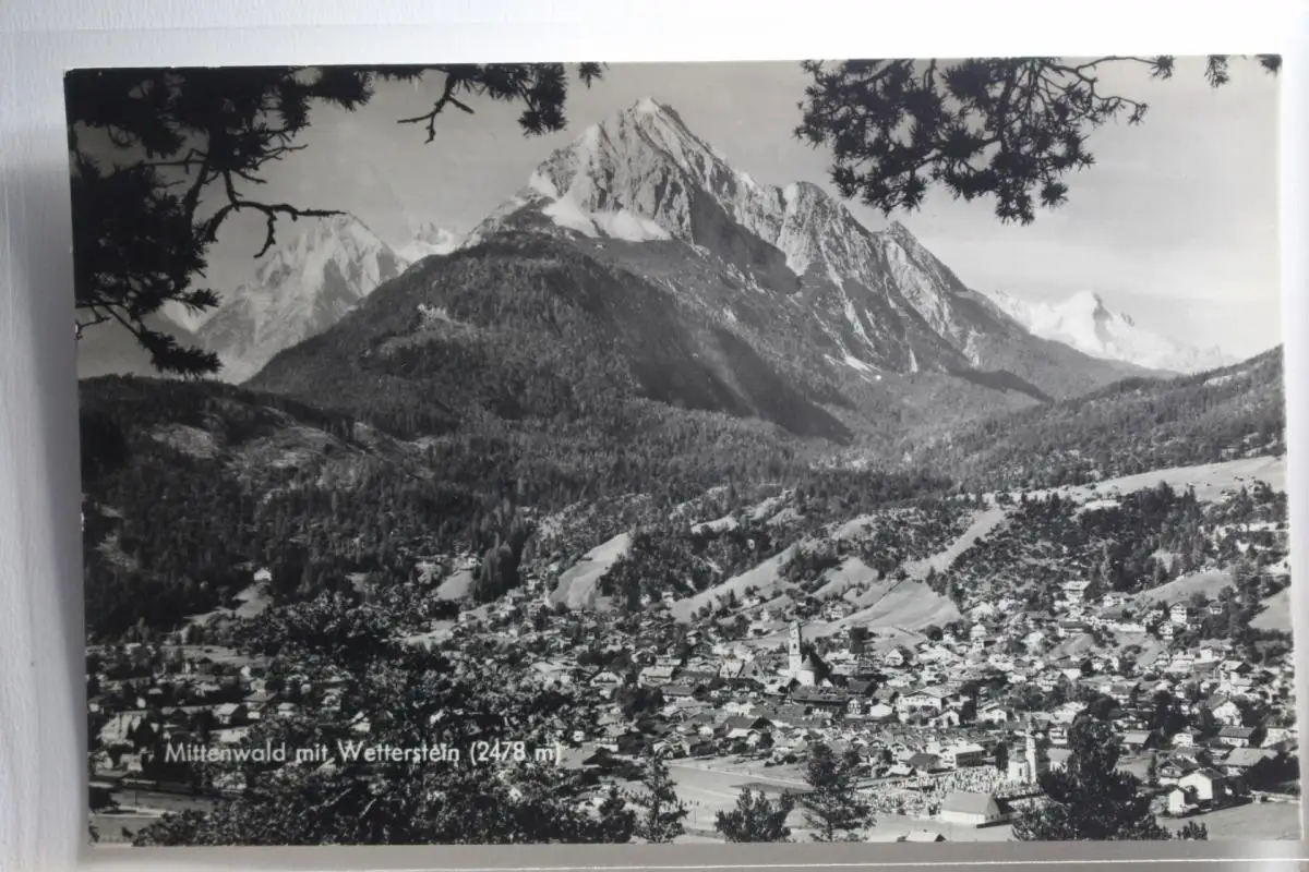 AK Mittenwald mit Wetterstein (2478m) 1957 #PH281