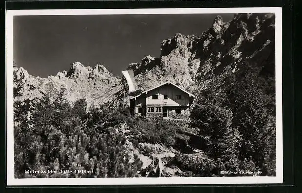 AK Mittenwalder Hütte, Berghütte mit waldiger Landschaft