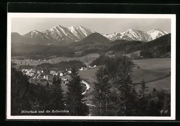 AK Mitterbach, Ortsansicht und die Zellerhütte