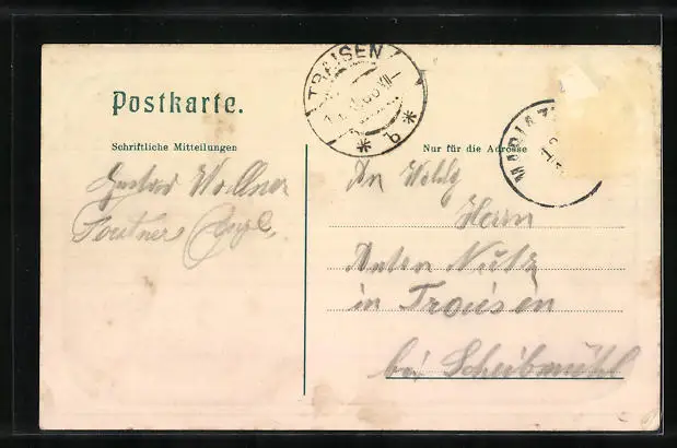 alte Ansichtskarte, gelaufen, Briefmarke entfernt, guter Zustand