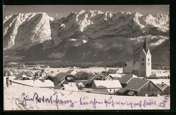 AK Mitterndorf, Ortsansicht mit Grimming im Winter