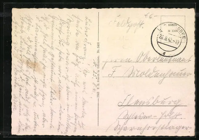alte Ansichtskarte, gelaufen 1942 als Feldpost, guter Zustand