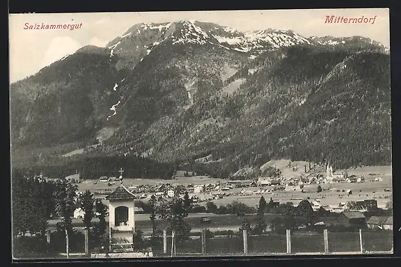 AK Mitterndorf, Salzkammergut, Teilansicht mit Kapelle
