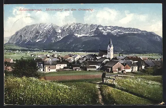 AK Mitterndorf, Salzkammergut, Teilansicht mit dem Grimming