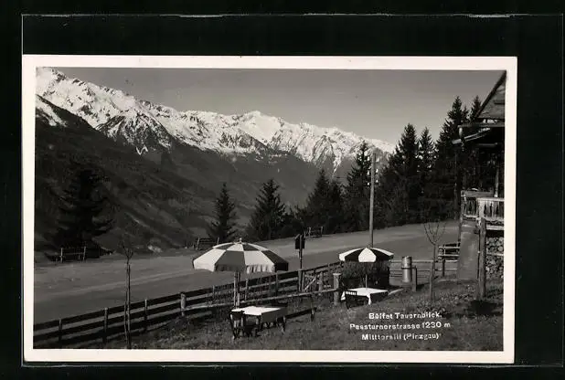 AK Mittersill, Gasthaus Buffet Tauernblick, Garten mit Passturnerstrasse