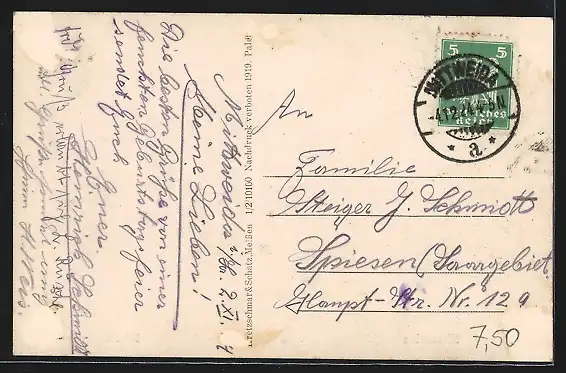 alte Ansichtskarte, gelaufen 1924, guter Zustand