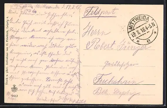 alte Ansichtskarte, gelaufen 1918, Abriebspur unten mittig, guter Zustand