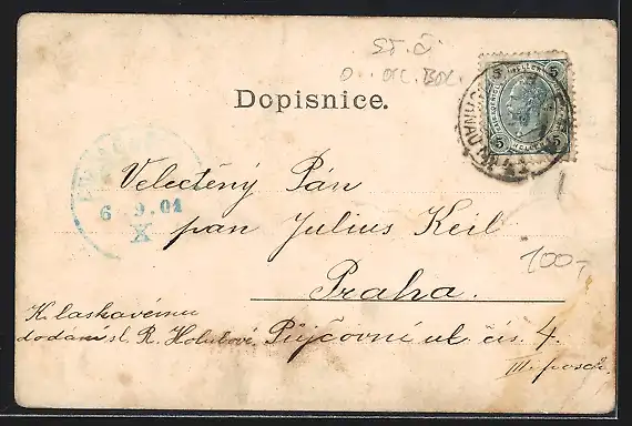 gelaufen 1901, Eckknicke li. unten und re. oben, guter Zustand