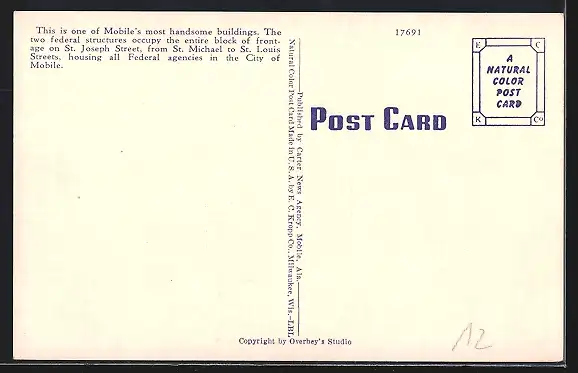 Ein Angebot in Ansichtskarten Alabama - 145 weitere Angebote in dieser Kategorie