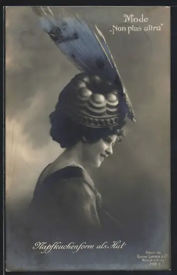 AK Mode, Non plus ultra, Napfkuchenform als Hut