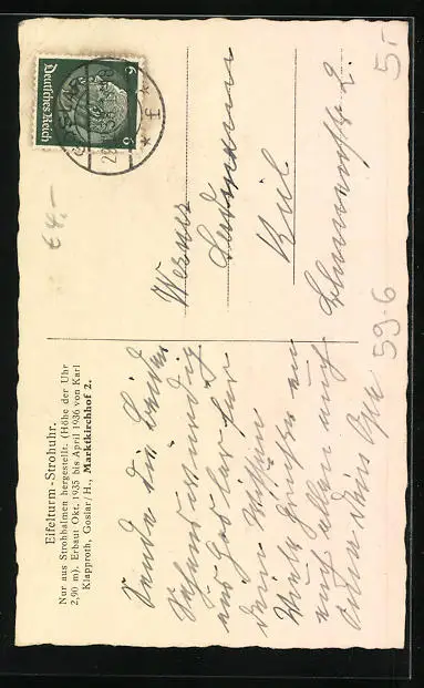 AK Modellbau Eifelturm-Strohuhr mit Portrait von Karl Klapproth