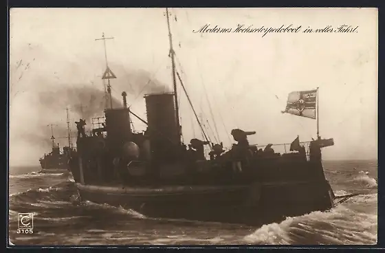 AK Modernes Hochseetorpedoboot in voller Fahrt, Kriegsschiff
