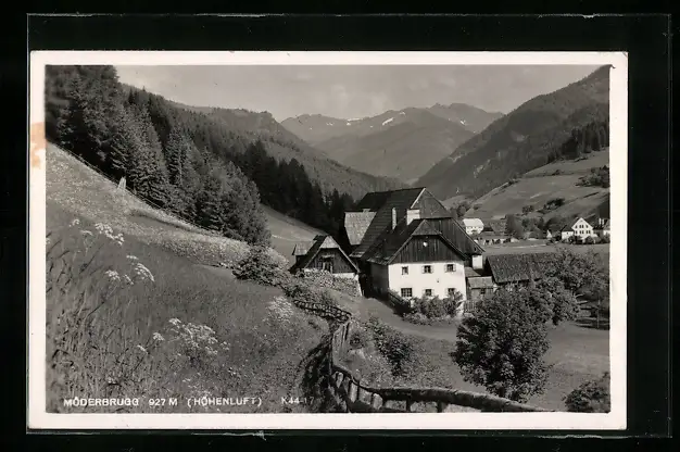 AK Möderbrugg, Ortspartie aus der Vogelschau