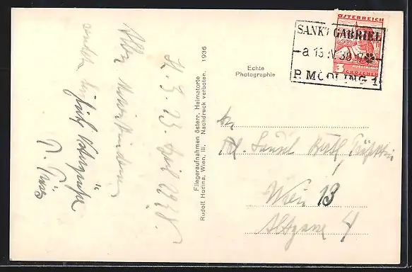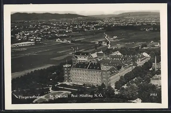 AK Mödling, Blick auf das Missionshaus St. Gabriel, Fliegeraufnahme