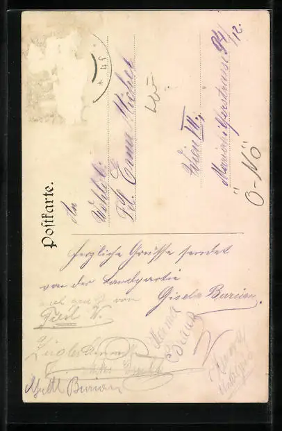 alte Ansichtskarte, gelaufen, Briefmarke entfernt, rückseitig Oberflächenschaden, guter Zustand