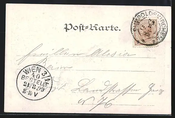 alte Ansichtskarte, gelaufen 1899, guter Zustand