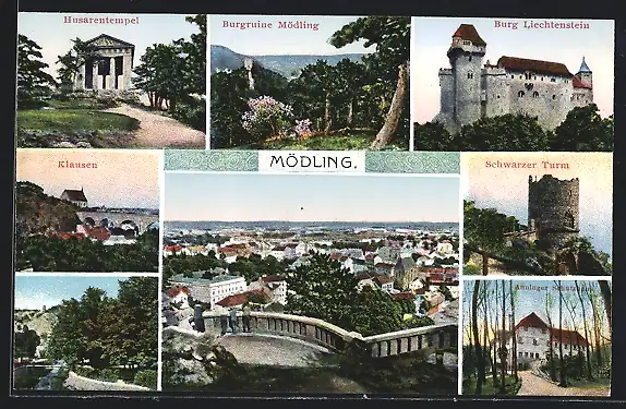 AK Mödling, Husarentempel, Schwarzer Turm, Anninger Schutzhaus