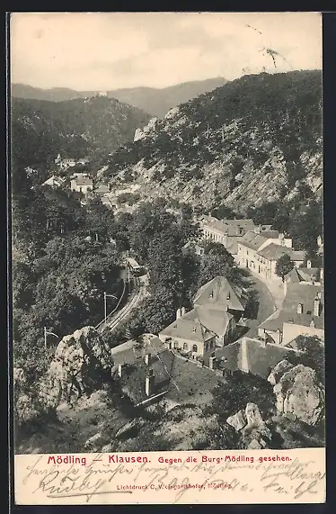 AK Mödling, Klausen, Gegen die Burg Mödling gesehen