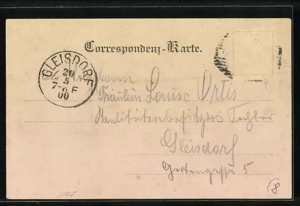 gelaufen 1900, Briefmarke entfernt, guter Zustand