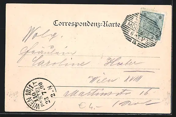 alte Ansichtskarte, gelaufen 1900, Stempelspur, guter Zustand