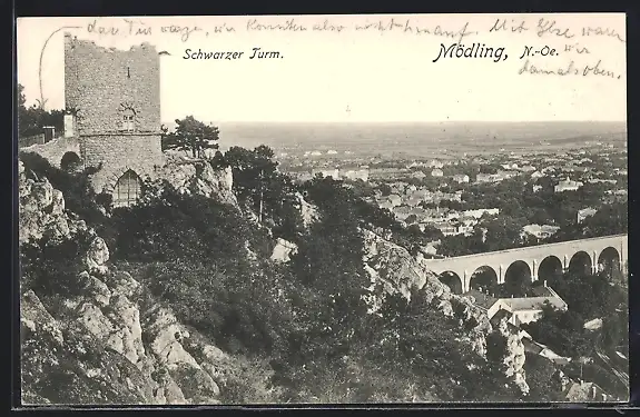 AK Mödling, Schwarzer Turm und Teilansicht