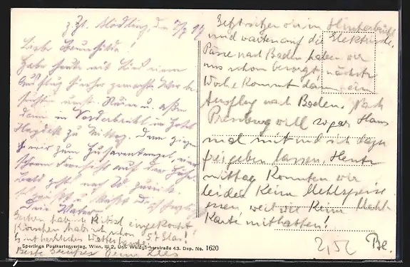 Personenbezogene Daten auf der Rückseite der Karte wurden durch blauen Textmarker unkenntlich gemacht. Die blauen Stellen sind auf die Vorderseite durchgeweicht und wirken sich negativ auf das Postkartenfoto aus