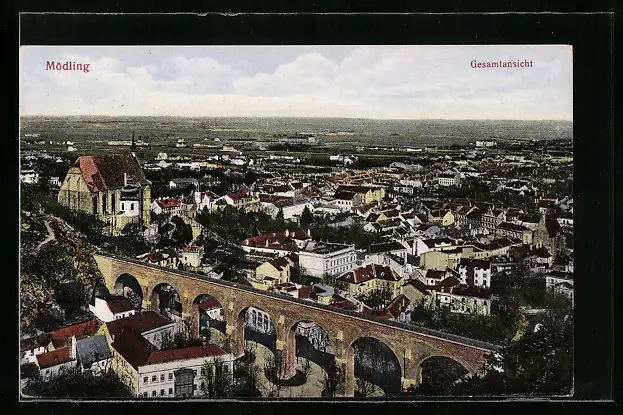 AK Mödling, Stadtansicht mit Viadukt