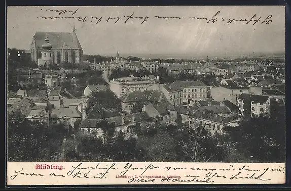AK Mödling, Teilansicht mit Kirche