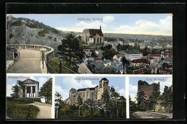 AK Mödling, Totalansicht, Burg Liechtenstein, Burg Mödling, Husaren-Tempel