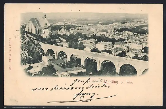 AK Mödling bei Wien, Teilansicht mit Viadukt