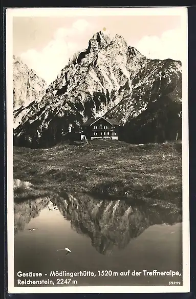 AK Mödlingerhütte /Gesäuse, Ansicht auf der Treffneralpe, mit Reichenstein