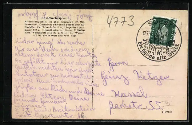 alte Ansichtskarte, gelaufen, Eckknick und kleiner Einriss rechts unten, guter Zustand