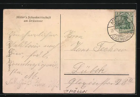 AK Mölln i. L., Möller`s Schankwirtschaft am Drüsensee