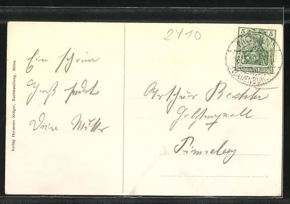 alte Ansichtskarte, gelaufen 1910, guter Zustand