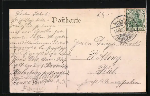 alte Ansichtskarte, gelaufen 1907, Stempelspur, guter Zustand