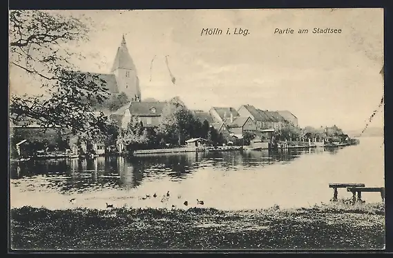 AK Mölln i. Lbg., Partie am Stadtsee mit Kirche