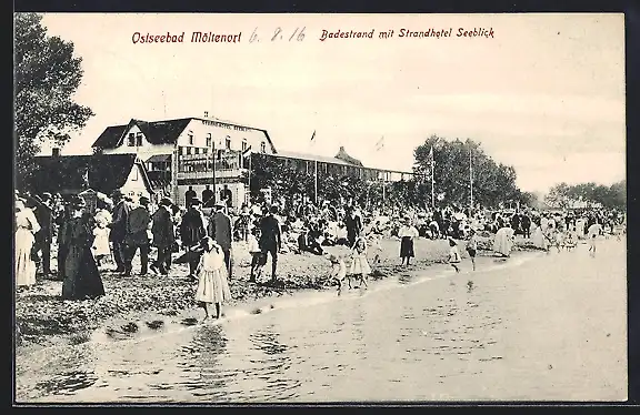 AK Möltenort, Badestrand mit Strandhotel Seeblick