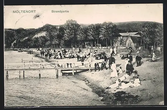 AK Möltenort, Strandpartie mit sich sonnenden u. spazierenden Personen