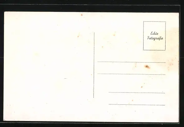 Personenbezogene Daten auf der Rückseite der Karte wurden durch blauen Textmarker unkenntlich gemacht. Die blauen Stellen sind auf die Vorderseite durchgeweicht und wirken sich negativ auf das Postkartenfoto aus