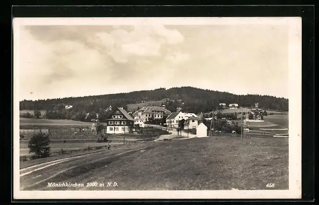 AK Mönichkirchen, Totalansicht mit Hotel Lang